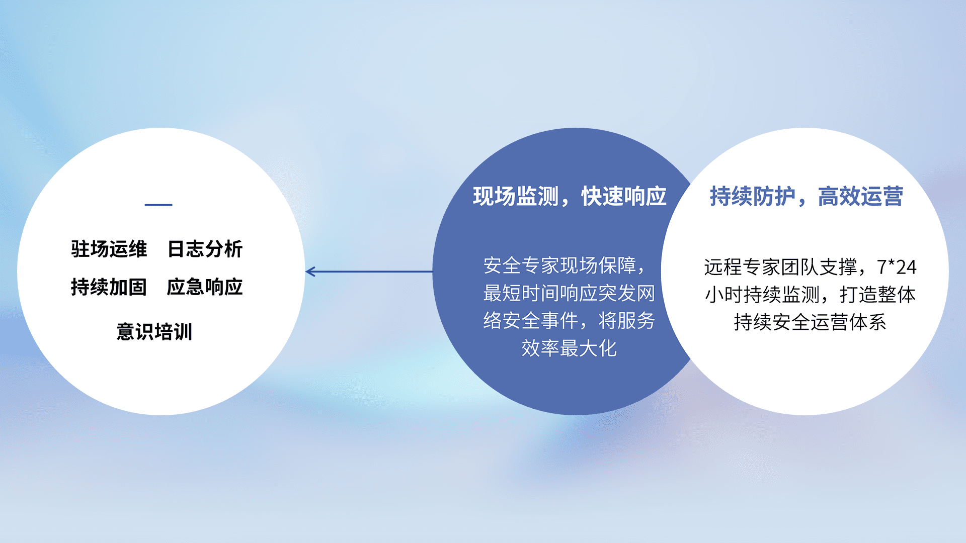 7X24小时持续监测安全事件,保持安全策略有效性,降低资产脆弱性风险,,精准拦截黑客攻击,,减少被黑客利用的机会,,,第一时间遏制,,,降低损失。。。